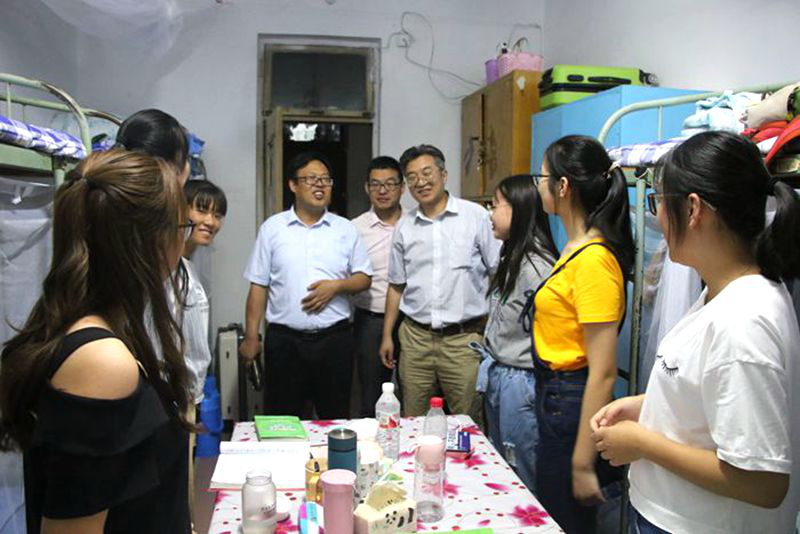 2018级新生刚刚入校,生命科学学院院长杨月伟、党委副书记赵强、团委书记刘洪铎、2018级辅导员刘文静、辅导员张慧芳等老师就带领学院团委、学生会干部们在9月10日晚深入到宿舍看望新生,了解、检查新生安置情况,关心新生的起居、饮食、生活等情况。