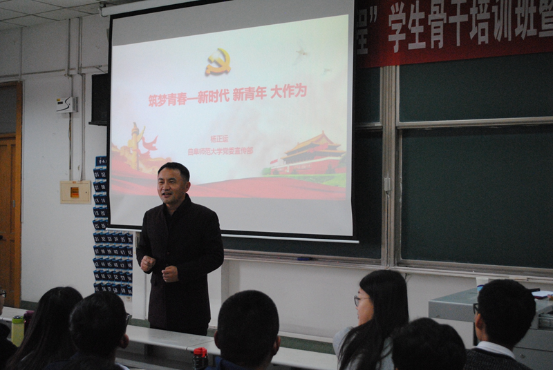 为继续在我校培养一批用马克思主义中国化的最新成果武装自己的马克思主义者,贯彻落实总书记重要讲话精神和团十八大部署要求,生命科学学院积极响应团中央及校团委的号召,开展青年马克思主义者培训活动,11月14日下午于综合楼506教室举办了青年马克思主义者培训开幕式。出席本次开班仪式的嘉宾是曲阜师范大学党委宣传部副部长杨正运老师、生命科学学院党委副书记赵强老师、团委书记刘洪铎老师、辅导员张慧芳老师和刘文静老师。