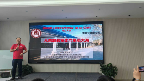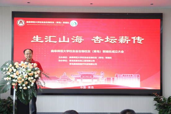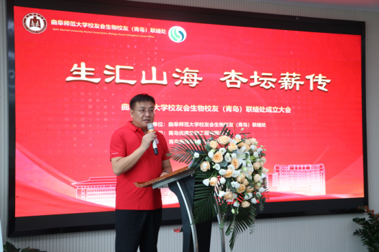 孙赫宏副会长代表校友会青岛联络处致辞祝贺,希望生物校友联络处融入青岛校友大家庭,加强协作,共同服务校友、贡献母校。